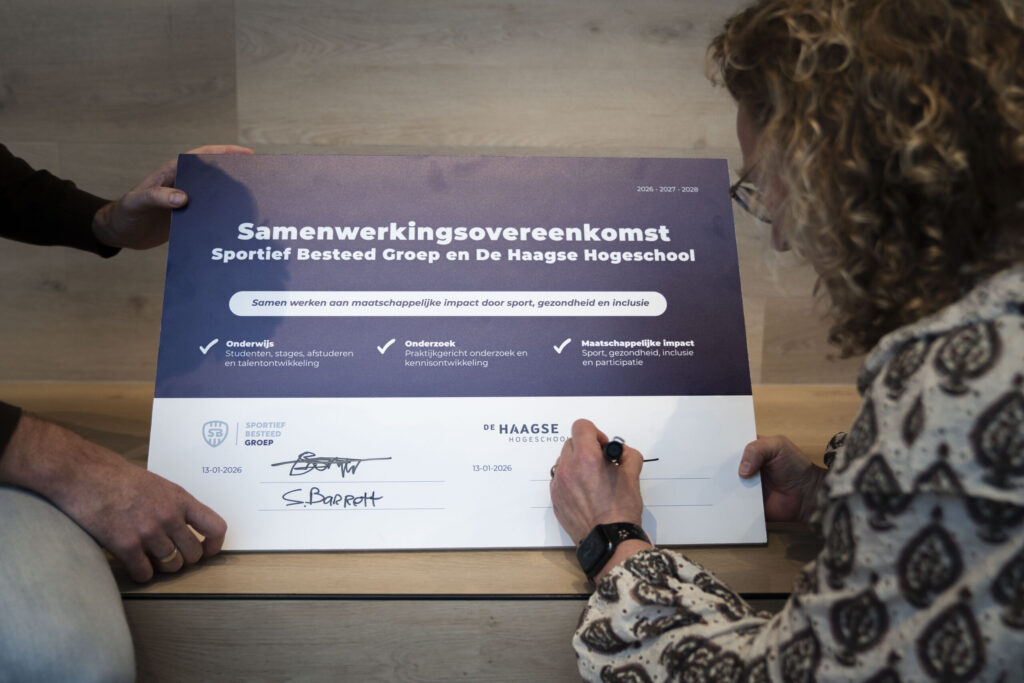 Sportief Besteed Groep en De Haagse Hogeschool hebben vandaag een meerjarige samenwerkingsovereenkomst ondertekend. Met dit partnerschap versterken zij hun gezamenlijke inzet voor een vitale, gezonde en inclusieve samenleving in Den Haag en de regio. De samenwerking loopt in ieder geval tot en met 2028.Geplaatst in categorie: Case -