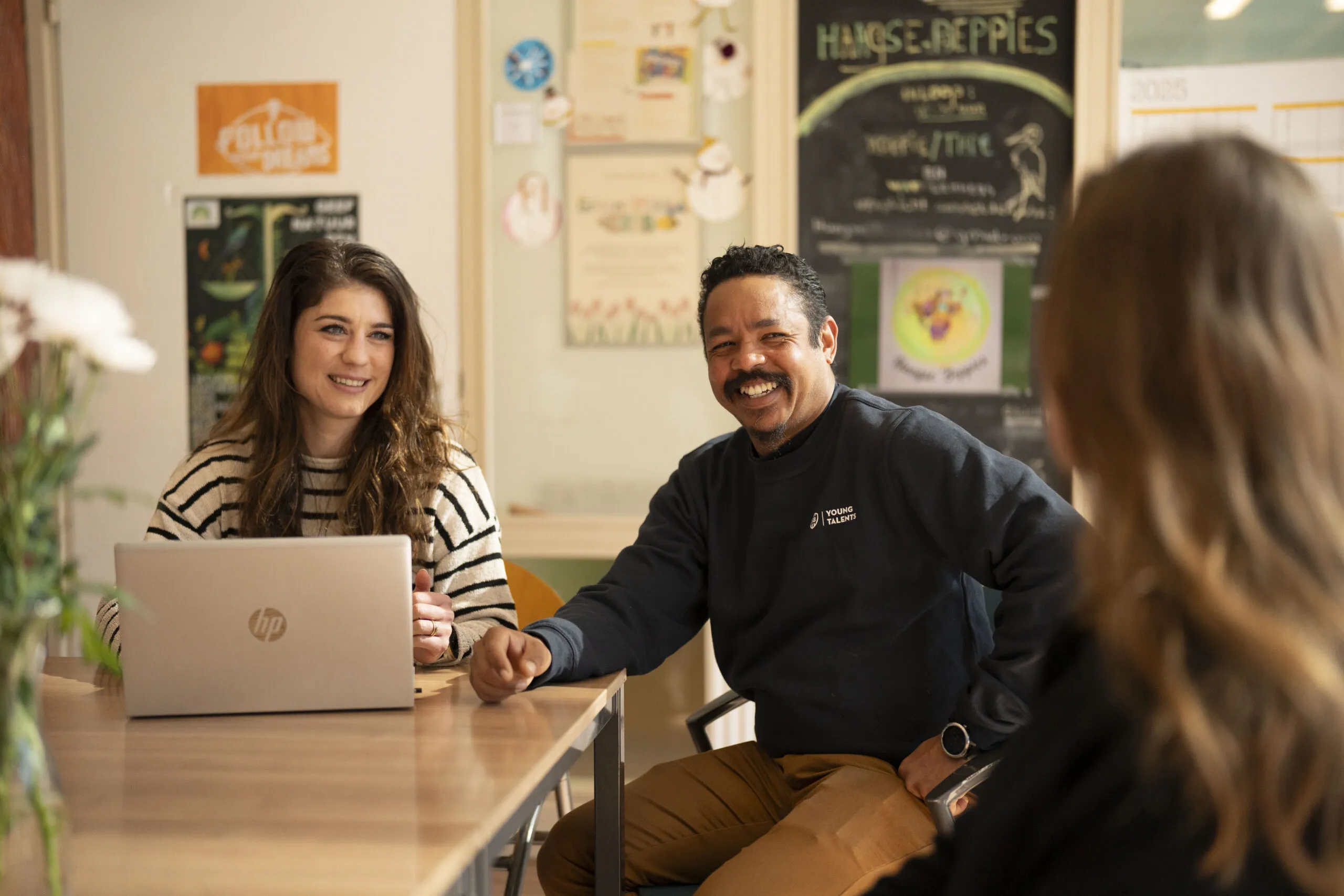 Teamleden van Young Talents in gesprek met elkaar
